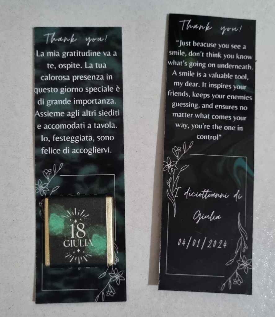 Segnaposto in cartoncino con cioccolatino fronte/retro