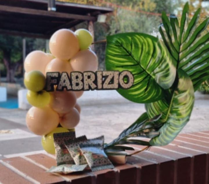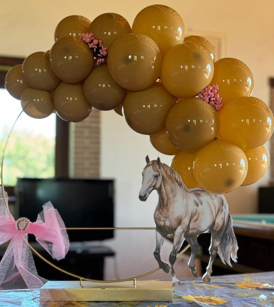 Centrotavola tondo con BASE STUCCATA, palloncini e decorazioni a tema
